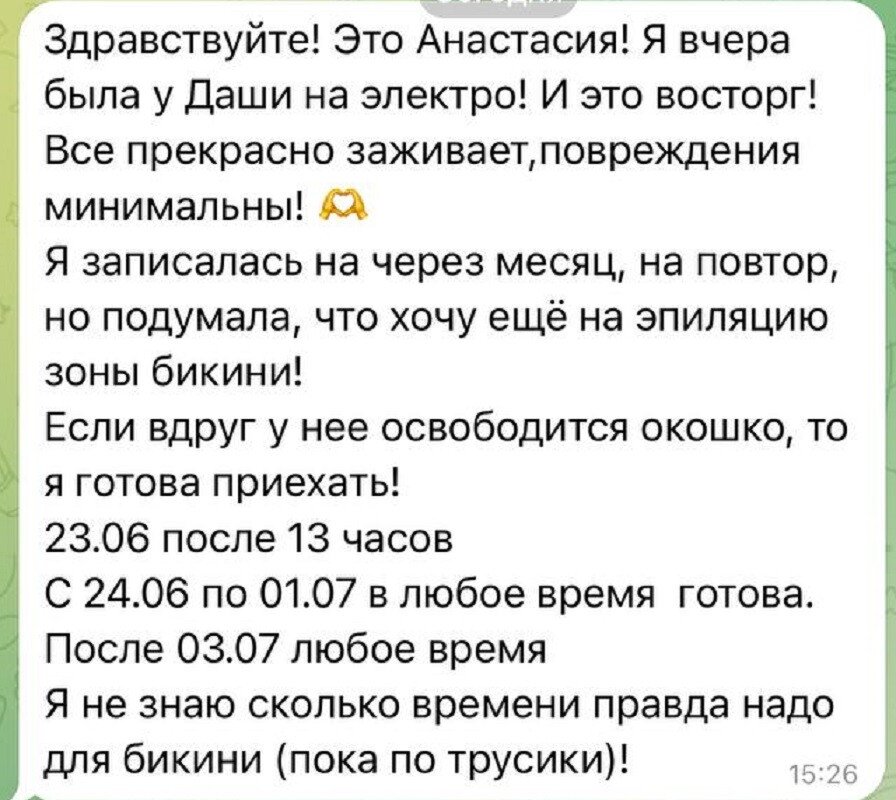 Ленинг Виктория как бьюти-специалист постарается сделать так, чтобы вы стали ее постоянным клиентом. Она предлагает такую услугу, как электроэпиляция.